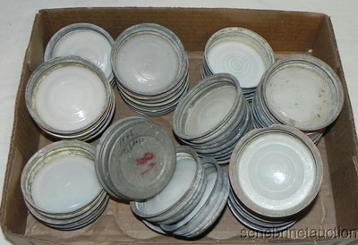 Title (ebay affiliate link): 35-OLD ZINC CANNING JAR LIDS W/MILK GLASS INSERTS (BALL & ATLAS) #W69
