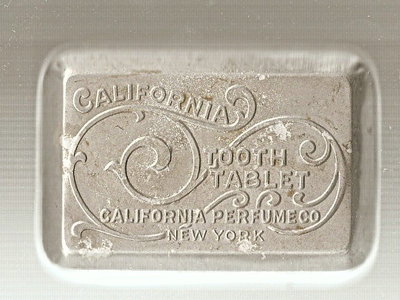 Title (ebay affiliate link): California Tooth Tablets, California Perfume Co., Tooth Powder, Milk glass, Tin