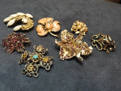 7 VINTAGE BROOCHES RHINESTONE MILKGLASS FAUX PEARLS