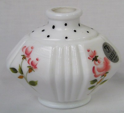 Title (ebay affiliate link): FENTON J. ACADU HAND PAINTED ROSES ON MILK GLASS PERFUME BOTTLE - NICE! N RES