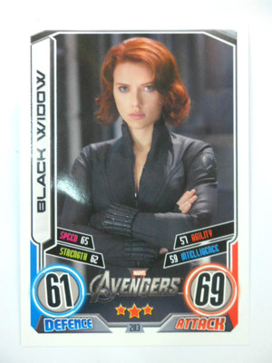 Title (ebay affiliate link): TOPPS HERO ATTAX THE AVENGERS SERIES 2 MOVIE CARD - # 203 BLACK WIDOW