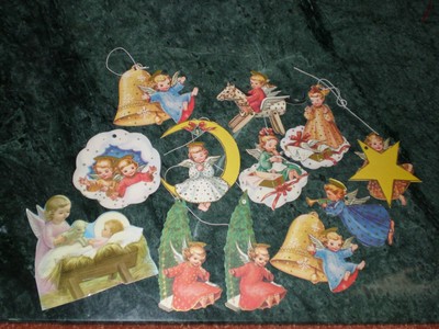 Title (ebay affiliate link): Vintage Christmas die cut ornaments and 3D Nativity cut outs Antique