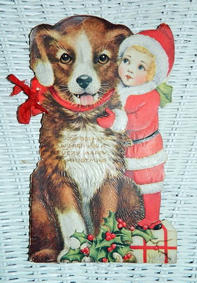 Title (ebay affiliate link): Darling Antique 1924 Christmas Card Booklet with Dog Holly and Santa Suit Kewpie