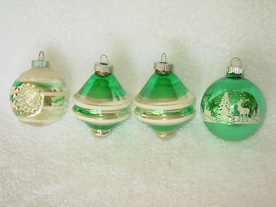 Title (ebay affiliate link): Four Bright Green Vintage Mercury Glass "Shiny Brite" Christmas Tree Ornaments