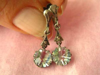 Title (ebay affiliate link): RARE! RARE! Antique Sterling IRIS Glass Dangle Earrings