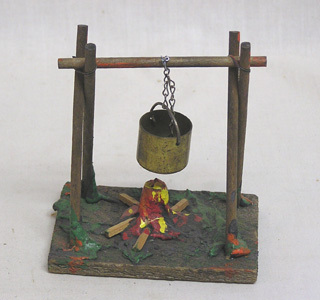 Vintage Christmas Putz Village Campfire w brass bucket FAB!