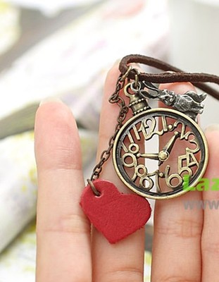 Title (ebay affiliate link): 1pcs Antique Style Bronze Clock Red Heart Rabbit Long Necklace A9 FREE SHIP