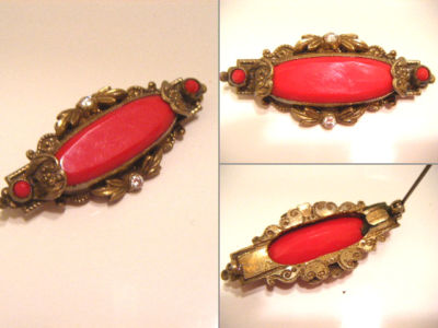 Title (ebay affiliate link): BEAUTIFUL ANTIQUE SOLID BRASS ORNATE BROOCH PIN W/RED C