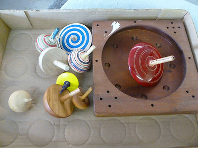 Title (ebay affiliate link): Lot of 9 Wooden Spinning Tops w/platform - 1986 Toycrafter, etc