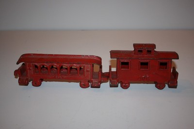 Title (ebay affiliate link): Antique Cast Iron Train Cars Passenger Caboose Painted Red Number 403 Toy