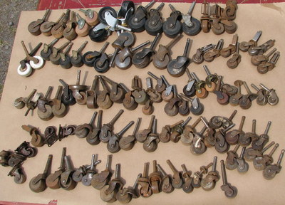Title (ebay affiliate link): 8 POUND PLUS SALVAGE LOT of 100+ OLD CASTER WHEELS, RESTORATION, WORKSHOP, ART,