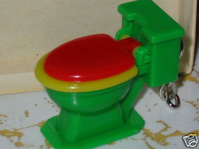 Title (ebay affiliate link): VTG Adorable Novel Miniature Toilet keychain Green Yellow Orange Lid & Seat Work