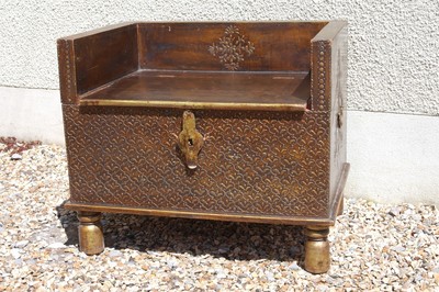 Title (ebay affiliate link): Vintage Indian Single Ottoman Hall Seat, Relief Hand Decorated Occasional Chair
