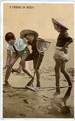 Title (ebay affiliate link): A friend in need - children on the beach- a crab-1914 postmark