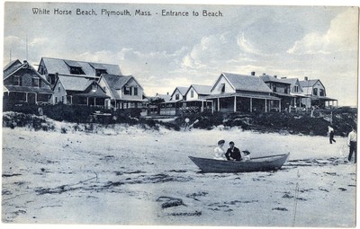 Title (ebay affiliate link): Plymouth MA White Horse Beach Entrance Houses People Old Postcard