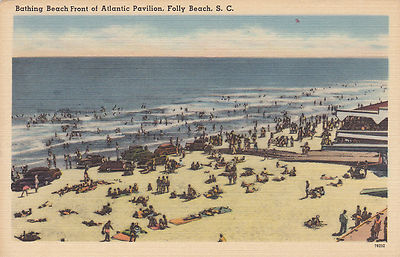 Title (ebay affiliate link): Folly Beach, SC - "Bathing Beach in Front of Atlantic Pavilion" Bathers, Autos