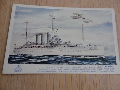Title (ebay affiliate link): Vintage collectable postcard H.M.S. Sussex date unknown but poss WWII 1940's