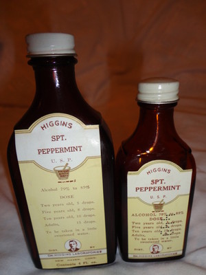 Title (ebay affiliate link): 1940 Dr. Higgins Laboratories 2 Spt. Peppermint Brown Glass Bottle Antique Mint