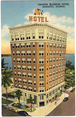 Title (ebay affiliate link): Sarasota Florida ORANGE BLOSSOM HOTEL Building Linen PM 1953 Postcard