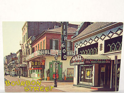 Title (ebay affiliate link): 1950S POSTCARD BOURBON STREET NEW ORLEANS LA,CAT-GIRL,DAN'S PIER 600