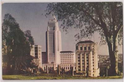 Title (ebay affiliate link): Los Angeles California Postcard City Hall & Skyline w/1948 Glendale CA Postmark