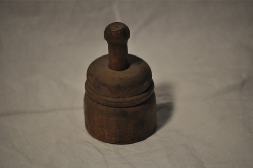 Title (ebay affiliate link): Antique Primitive Wood Butter Mold Small 3" tall Leaf Design