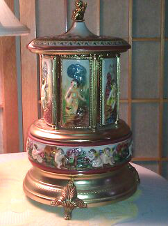 Title (ebay affiliate link): Vintage Reuge Capodimonte Musical Cherub Carousel Music Box Lipstick Cigarette