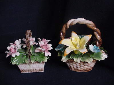 Title (ebay affiliate link): Vtg TWO Italian Porcelain Capodimonte Baskets of Flowers with Sticker & damage