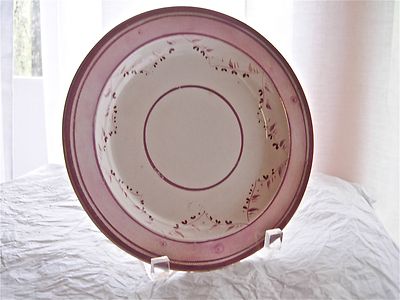 Title (ebay affiliate link): Pink copper Lustre ware plate 1890s 7 5/8" x 1/2" deep handpainted design #588