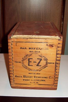 Title (ebay affiliate link): E-Z WELDING COMPOUND BY ANTI BORAX COMPOUND CO. PAT MAY 27, 1902 WOODEN BOX!