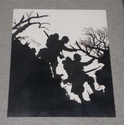 WWI ANTIQUE! Artist Signed INTRICATE SILHOUETTE Soldiers FRANCE
