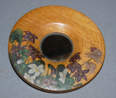Vintage Small Round Wooden Framed Mirror with Hand Painted Flowers
