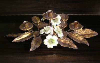 Title (ebay affiliate link): Antique Italy Italian Gold Gilt Tole Toleware Centerpiece Floral Candle Holder