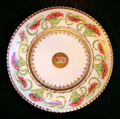 ANTIQUE BAVARIA PM PORCELAIN PLATE FLORAL GOLD GILT PORZELLANFABRIK MOSCHENDORF