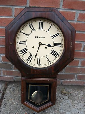 Title (ebay affiliate link): ETHAN ALLEN REGULATOR SCHOOLHOUSE CLOCK MISSING FRONT GLASS COMES W KEY PENDULUM