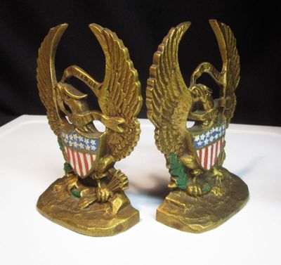 Title (ebay affiliate link): Antique WWII Period American Eagle & Shield Cast Iron Bookends Art Deco