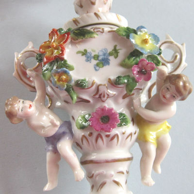 Title (ebay affiliate link): Antq Miniature Porcelain URN Potpourri CHERUBS Vienna Beehive Encrusted FLOWERS