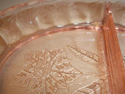 Vintage Pink Depression Glass Divided Server Jeanette Poinsettia Relish Dish