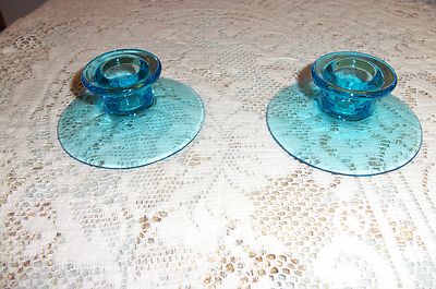 Title (ebay affiliate link): Vintage blue depression glass pair of candlestick holders