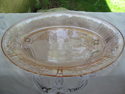 "SHARON" CABBAGE ROSE PINK DEPRESSION OVAL SERVING PLATTER -
