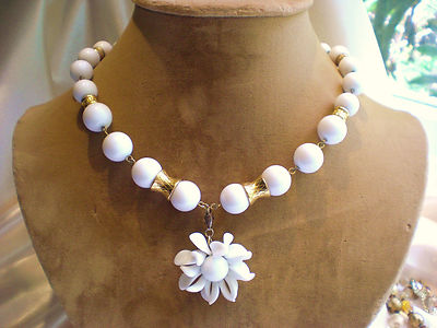 Title (ebay affiliate link): Vintage Jewelry Antique- White Beaded Necklace with Milk Glass Flower