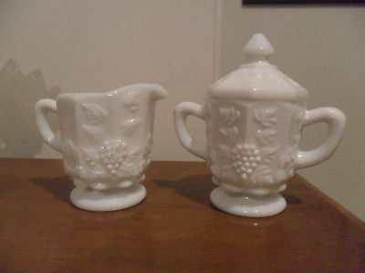 Title (ebay affiliate link): Westmoreland White Milk Glass Paneled Grape Sugar and Creamer Set