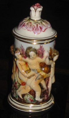 Title (ebay affiliate link): signed CAPODIMONTE 6" cherub jar/lid 3905 ITALY blue seal in china/green seal