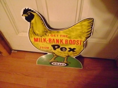 nos 1950S PEX ,CHICKEN, SAYS I GET THE MILK-BOOST FROM PEX,,KRAFT,,BOLD COLORS