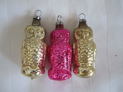 Title (ebay affiliate link): 3 Vintage 2 1/2" OWL Glass Christmas Ornaments Glass W. German Figural