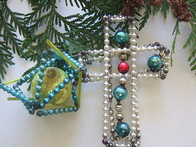 Title (ebay affiliate link): 2 Vintage Mercury Glass Bead Cross Diamond Tube Christmas Tree Ornament