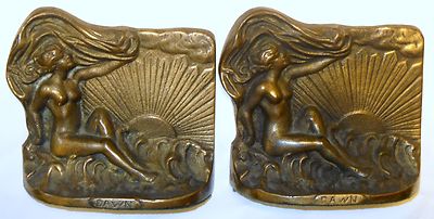 Pair of Vintage Dawn Art Nouveau Cast Bronze Bookends