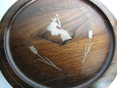 Title (ebay affiliate link): S207 Rosewood carved silver inlaid ceremonial tray w Ceres Gudinden grain marked