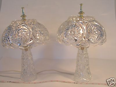 Pair Vintage Old Cut Pressed Lead Crystal Dome Glass Shade Lamps