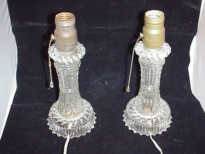 Title (ebay affiliate link): PAIR OF PRESSED GLASS ANTIQUE TABLE TOP GLASS LAMPS ,1930/40'S VINTAGE - *SEE!*